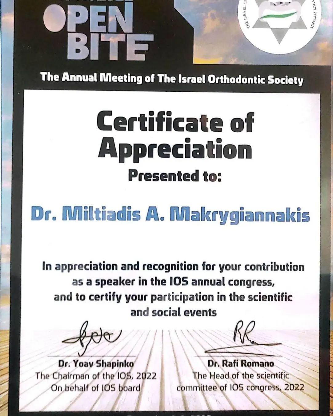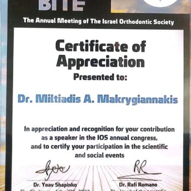 • Τίτλος Ειδικότητας στην Ορθοδοντική από το Κεντρικό Συμβούλιο Υγείας (ΚΕΣΥ), Υπουργείο Υγείας Ελλάδας